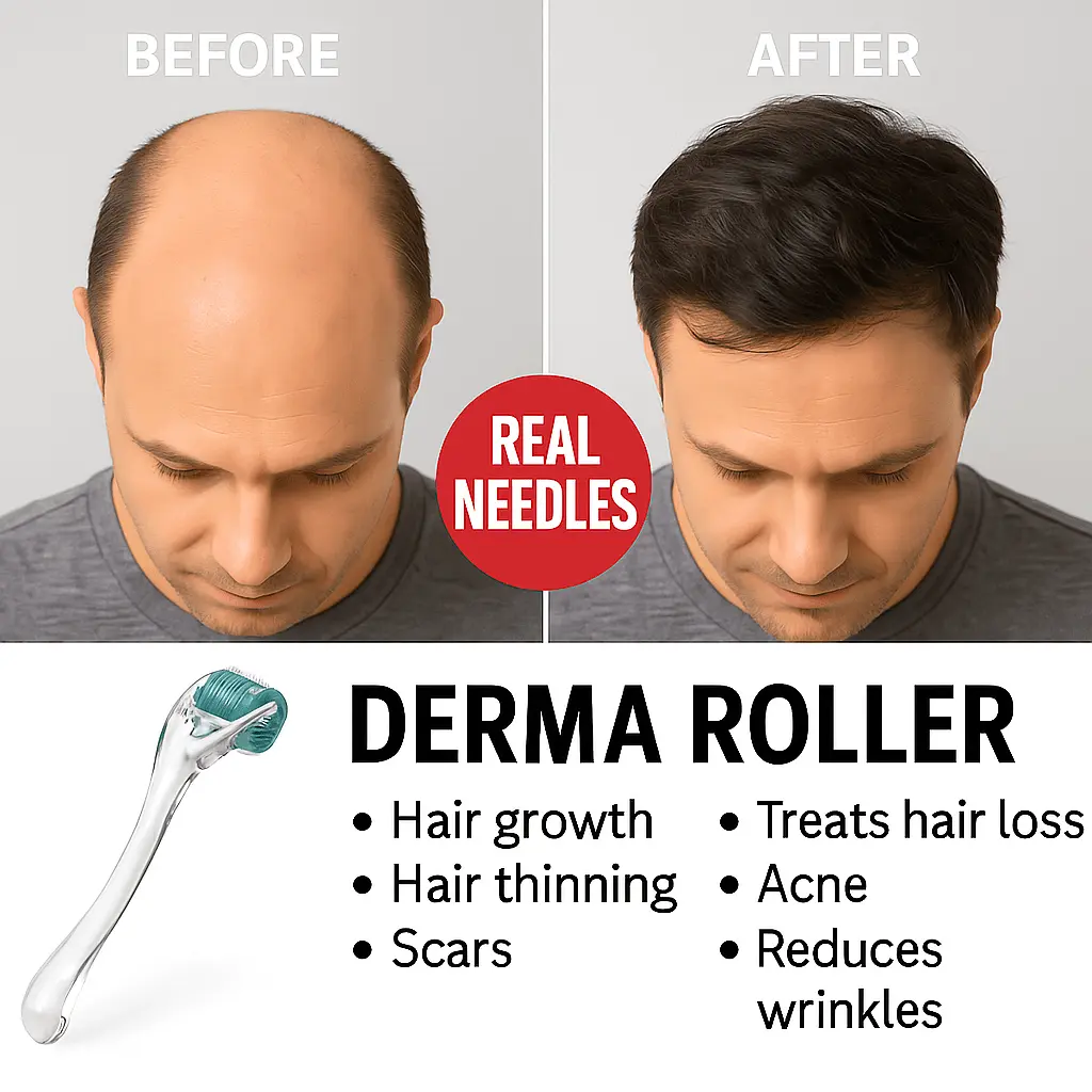 By revitalizing hair follicles and overall scalp health, derma rolling can help reduce hair loss and hair thinning caused by stress, hormonal imbalances, or poor blood circulation.